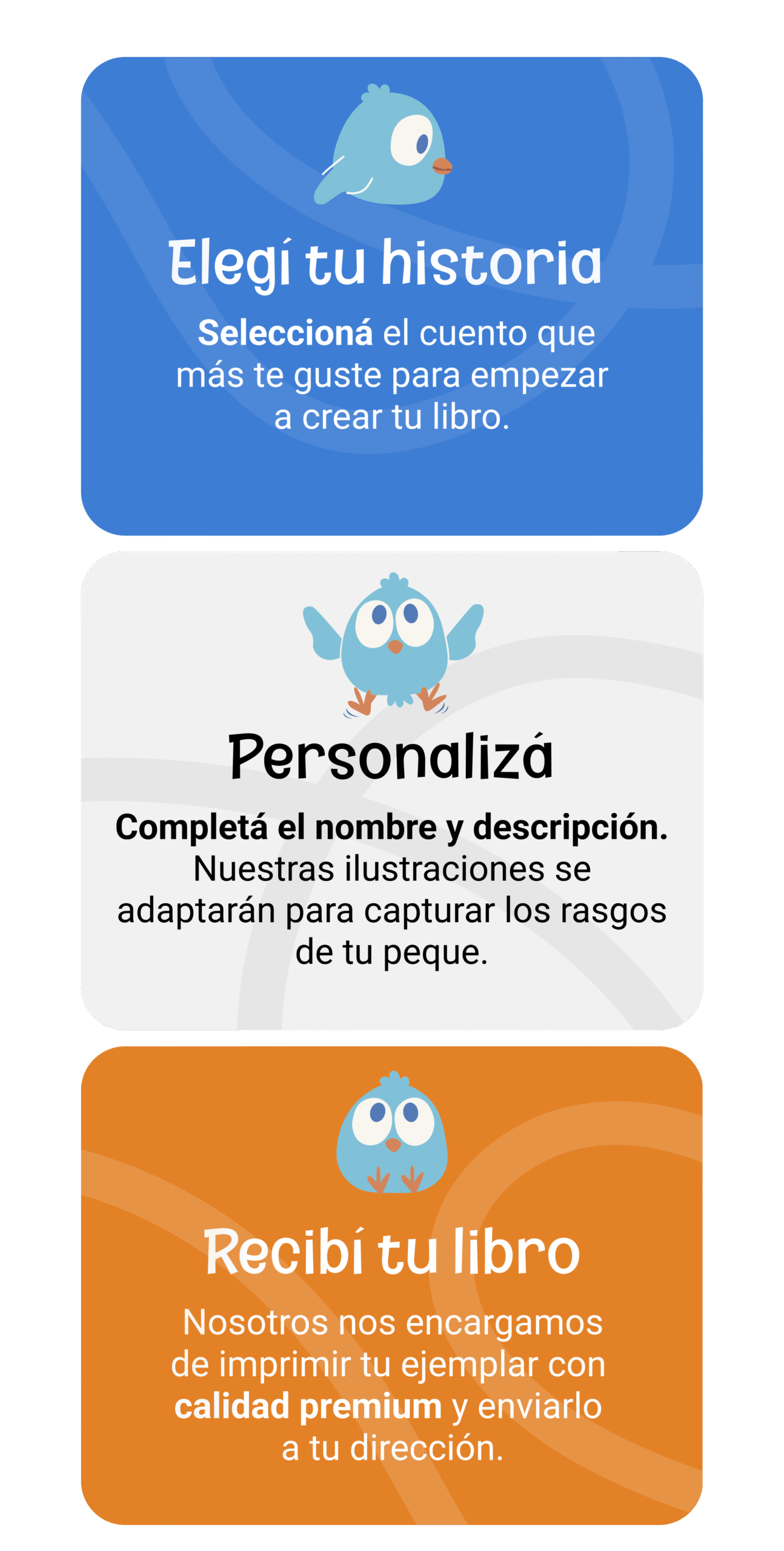 Es muy simple. Al elegir la historia, podrás seleccionar las características físicas del peque (color de ojos, tipo de cabello, tono de piel, etc.). Nuestra tecnología utiliza estos datos para crear ilustraciones únicas que capturan su esencia de forma fiel y artística.